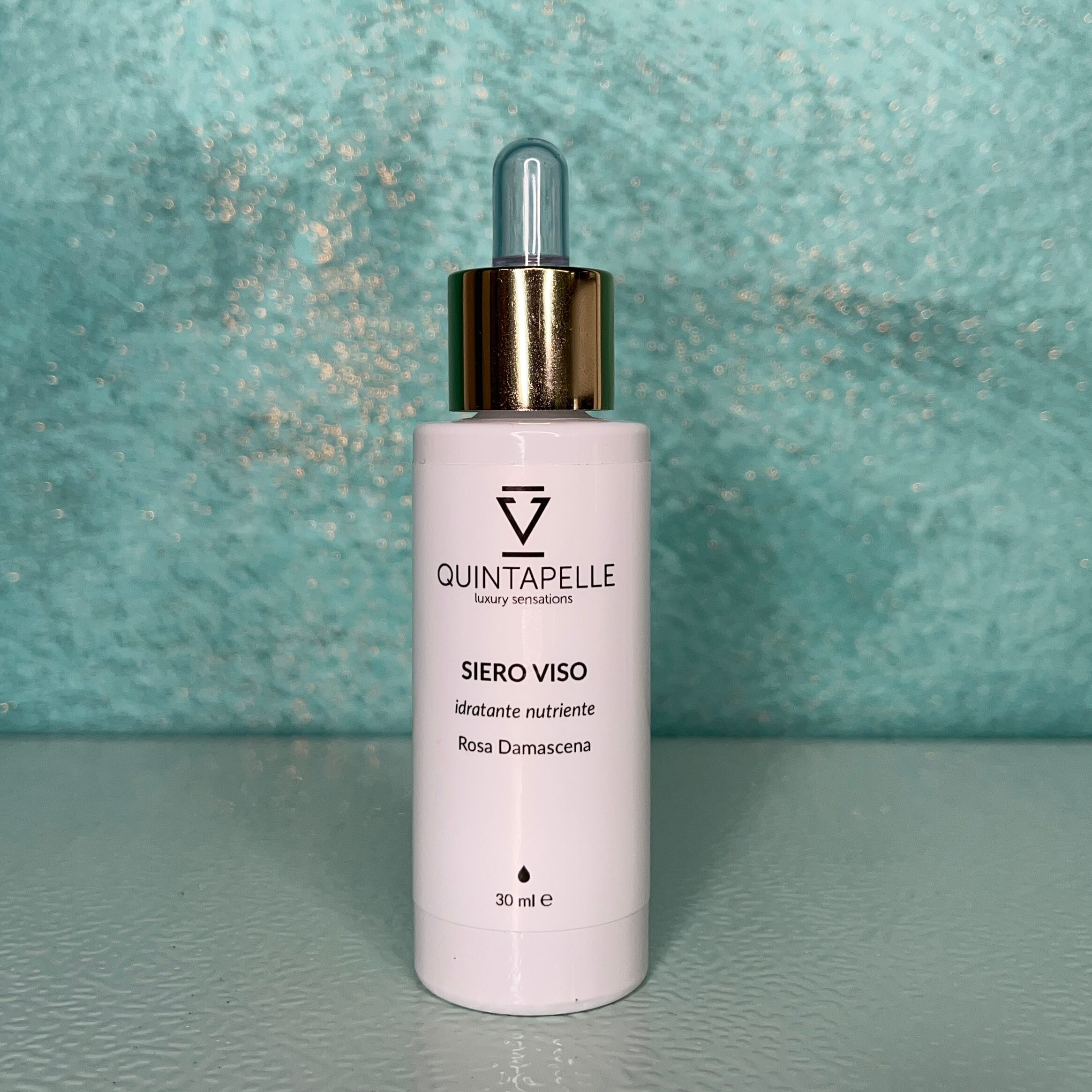 Il Siero Viso Quintapelle con principio attivo alla Rosa Damascena migliora l’idratazione, la luminosità e la compattezza della pelle.